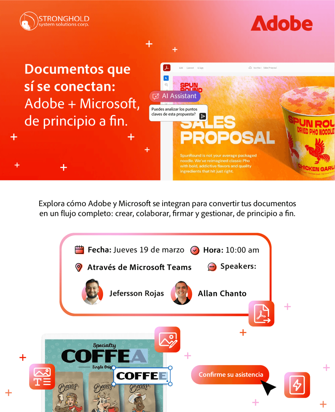 En este webinar vamos a ver cómo Adobe y Microsoft se integran para que tus documentos dejen de ser un “archivo suelto” y se conviertan en un flujo completo, claro y controlado: desde la creación y colaboración, hasta la revisión, firma y gestión.